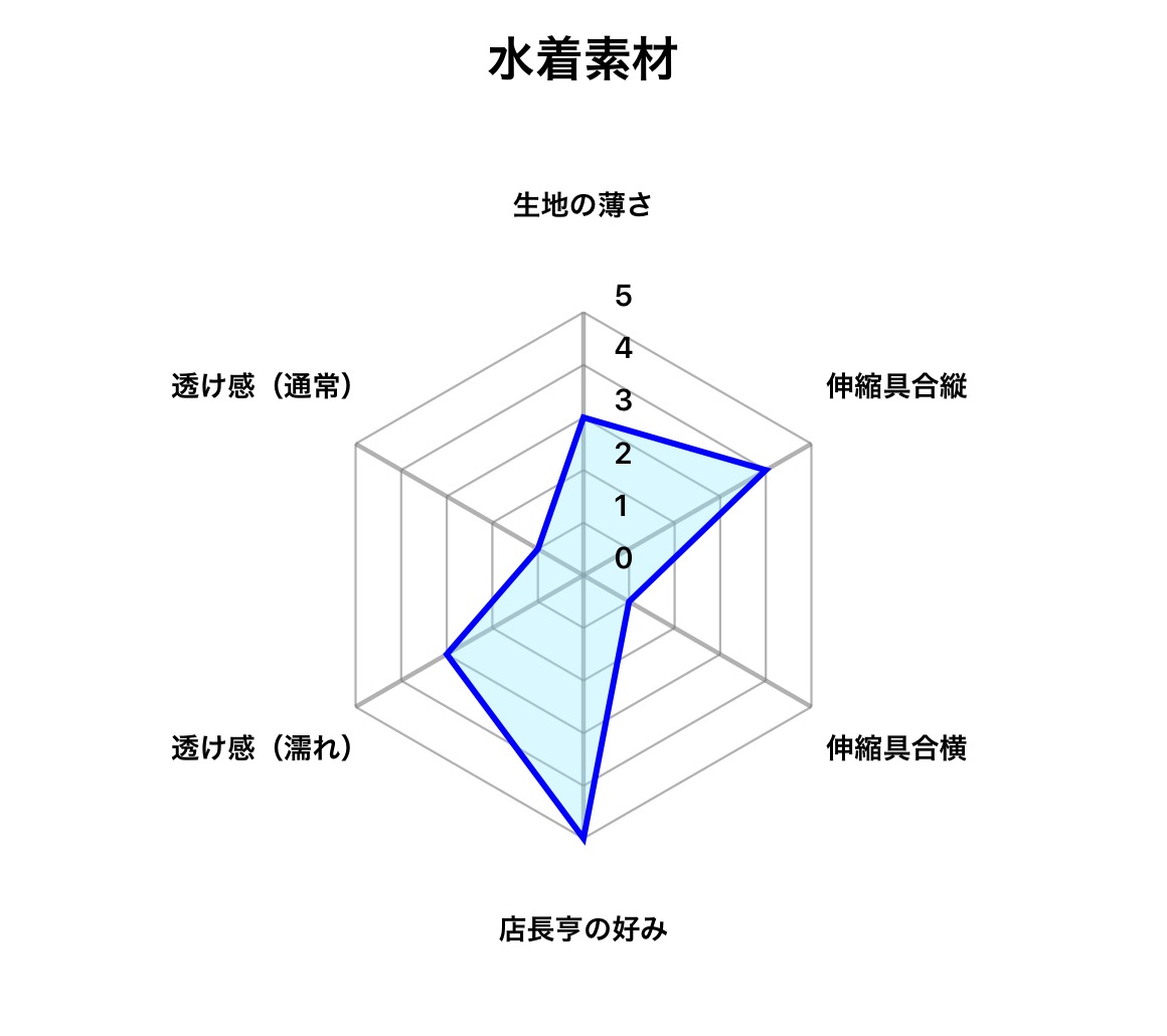 素材 ポリエステル x ポリウレタン(イメージ的には一般的な水着に使用される素材です)