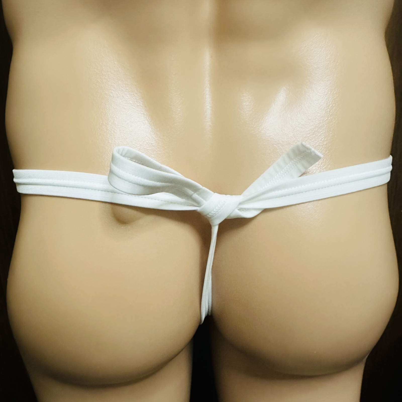 本体、紐共に縦横に良く伸縮する薄手の水着系素材で作った共布タイプの黒猫褌となります。