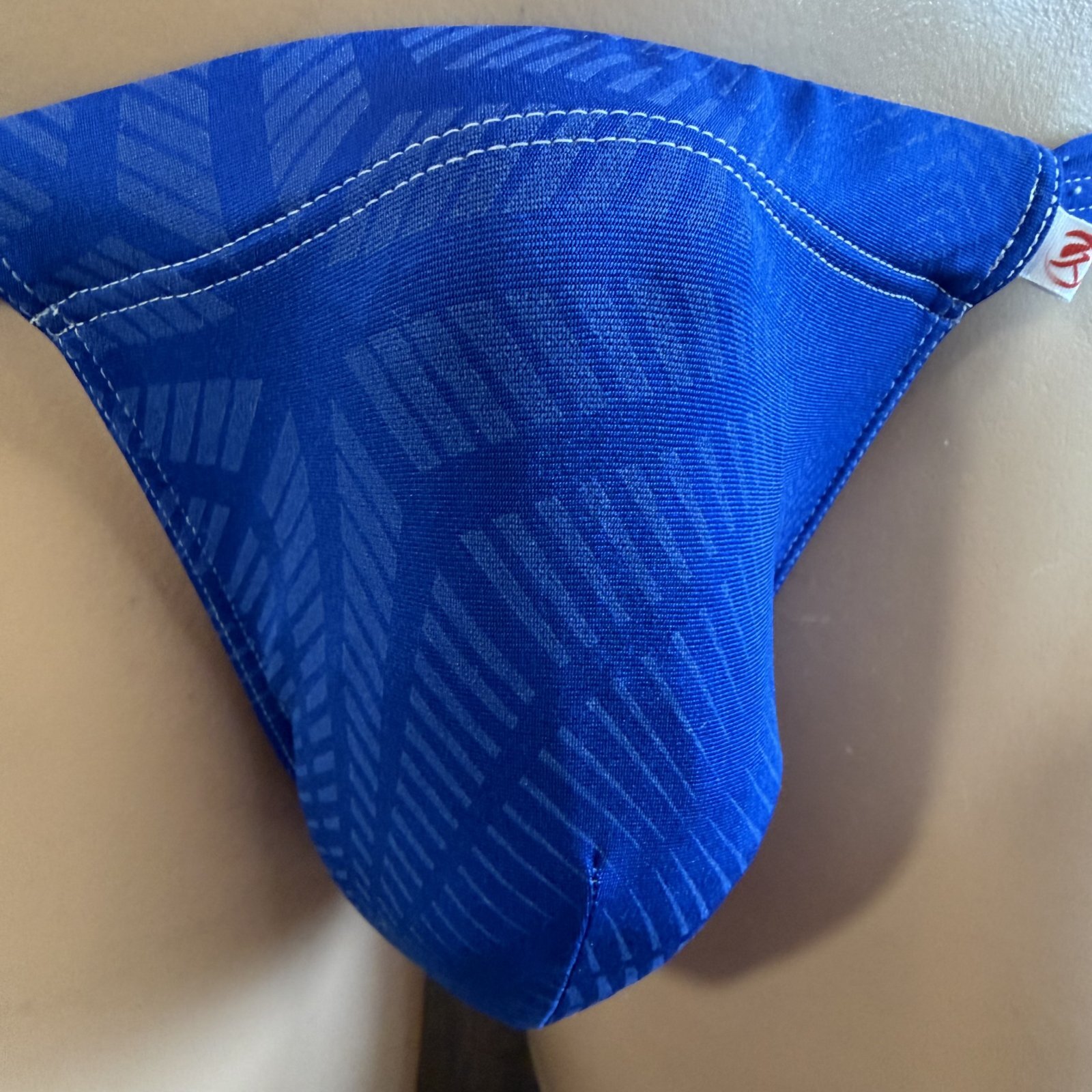 白地に黒の幾何学模様柄の黒猫褌です。工事現場の足場のようなシンプルで渋いデザインかと思います。